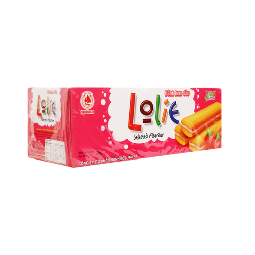 Bánh Lolie dâu Hải Hà do Csfood phân phối có hương vị cốm đặc trưng, lớp vỏ mềm ngọt cùng lớp kem béo ngậy bên trong cho bạn cảm giác thú vị khi thưởng thức. Sản phẩm được sản xuất tại Công ty Cổ phần Bánh kẹo Hải Hà trên dây chuyền công nghệ hiện đại, đảm bảo vệ sinh an toàn thực phẩm cho bạn hoàn toàn yên tâm khi sử dụng. Bánh kem dâu Lolie dùng ăn ngay mang lại sự tiện lợi cao.