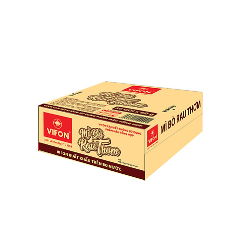 Mì Bò Rau Thơm Vifon Gói 60g x Thùng 30 Gói do Csfood phân phối là sản phẩm được sản xuất dựa trên các tiêu chuẩn và công nghệ hiện đại, không chất bảo quản, hương vị rau thơm đặc trưng ngon tuyệt, sợi mì dai ngon với công nghệ ép sợi công nghệ hiện đại, đem lại năng lượng cho bạn trong mọi bữa ăn.
